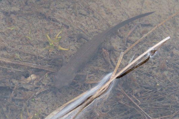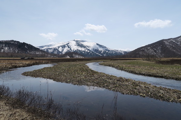 雪が消えた尾瀬ヶ原ではミズバショウが咲き始め、池塘ではイモリの姿もありましたが、生きものたちの活動は始まったばかりです。
