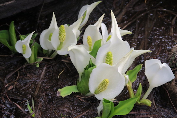 写真は山の鼻の研究見本園のミズバショウとリュウキンカです。